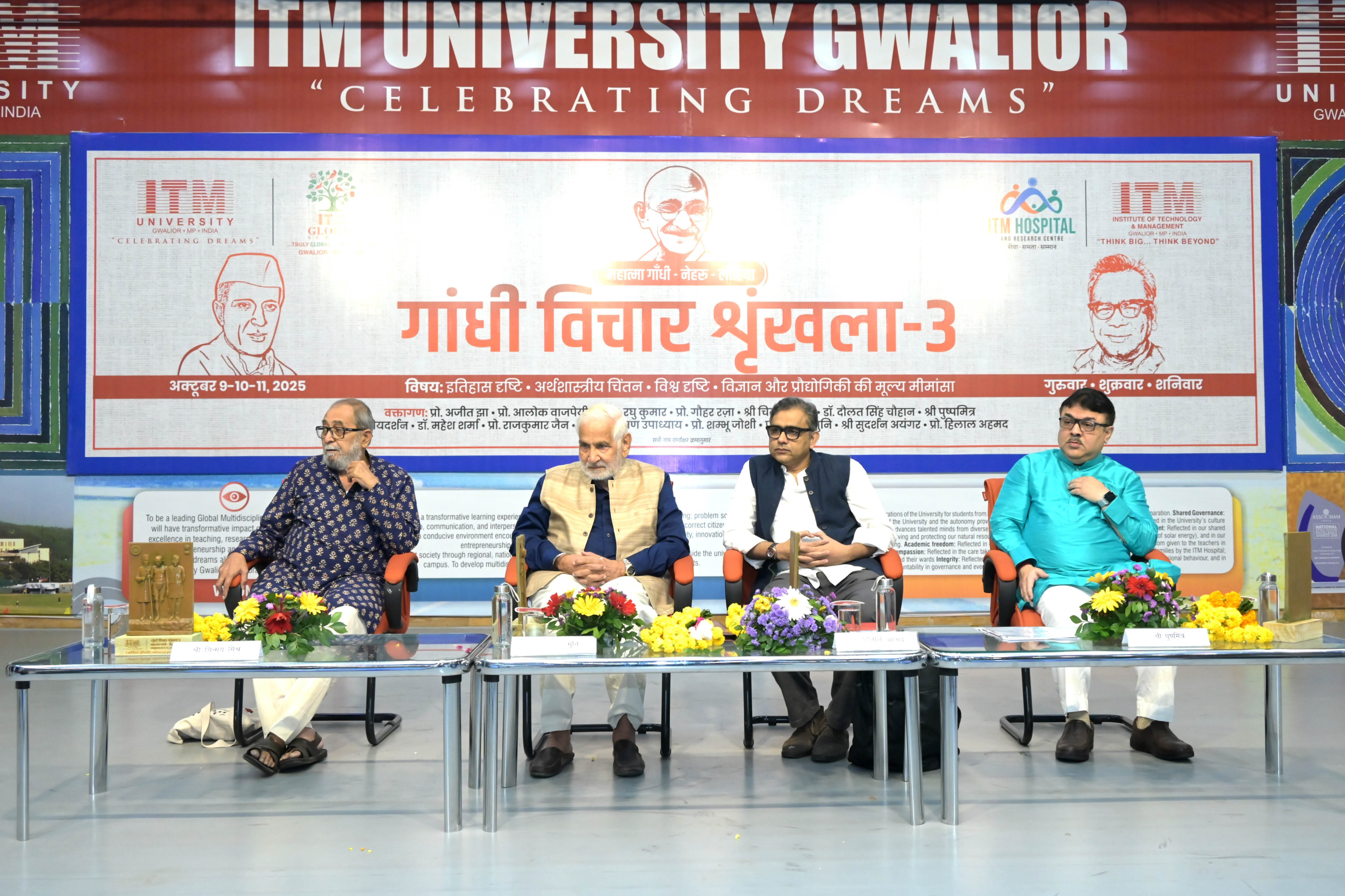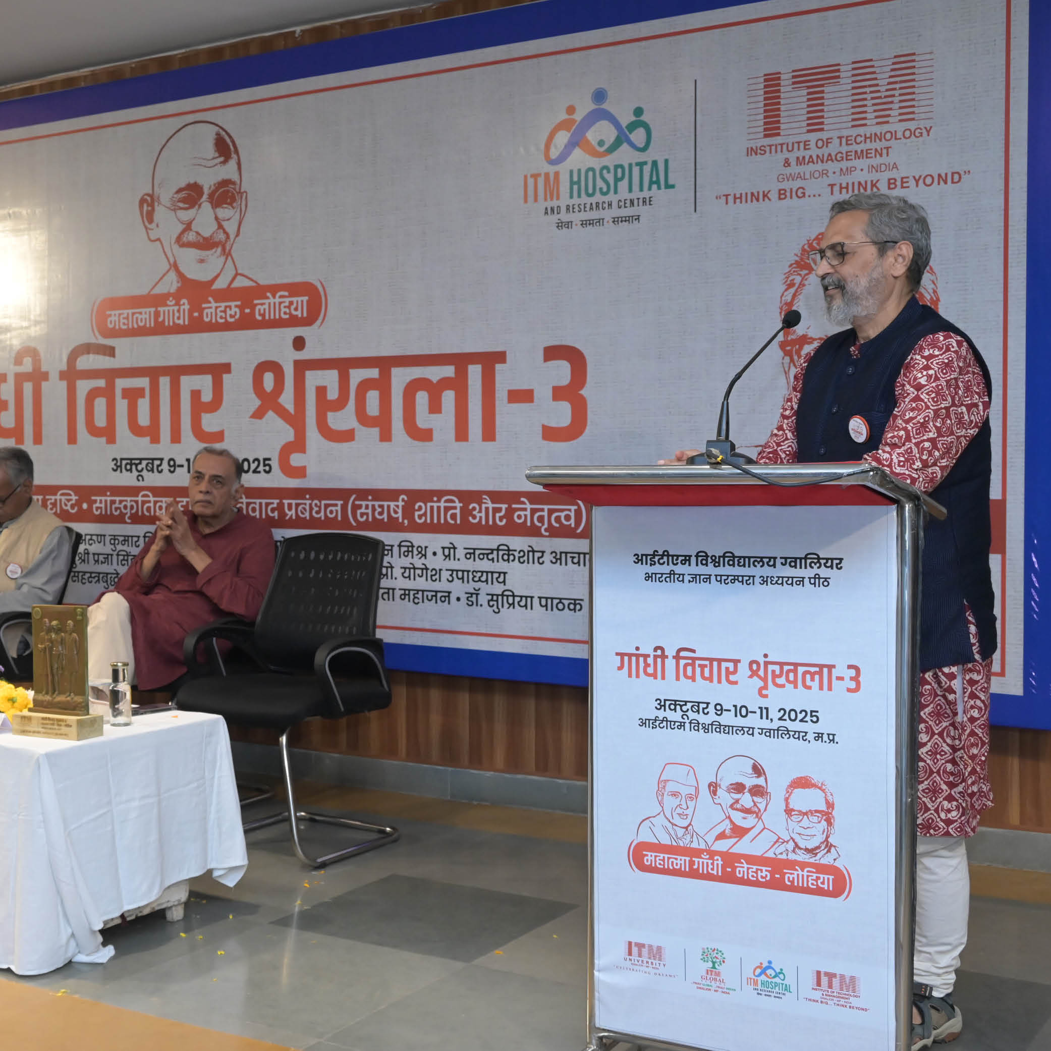 ‘गांधी विचार शृंखला – 3’ तीन दिवसीय राष्ट्रीय अकादमिक संवाद श्रृंखला थी, जिसका उद्देश्य महात्मा गांधी, पंडित जवाहरलाल नेहरू तथा डॉ. राममनोहर लोहिया के नैतिक, सामाजिक और राजनैतिक विचारों का अध्ययन एवं उनकी समकालीन प्रासंगिकता पर विमर्श करना था। यह कार्यक्रम भारतीय ज्ञान परम्परा अध्ययन पीठ द्वारा आयोजित किया गया, जिसने आईटीएम विश्वविद्यालय की इस प्रतिबद्धता को पुनः पुष्ट किया कि भारतीय दार्शनिक परम्परा और आधुनिक अकादमिक विमर्श के बीच निरंतर संवाद स्थापित करना आवश्यक है।