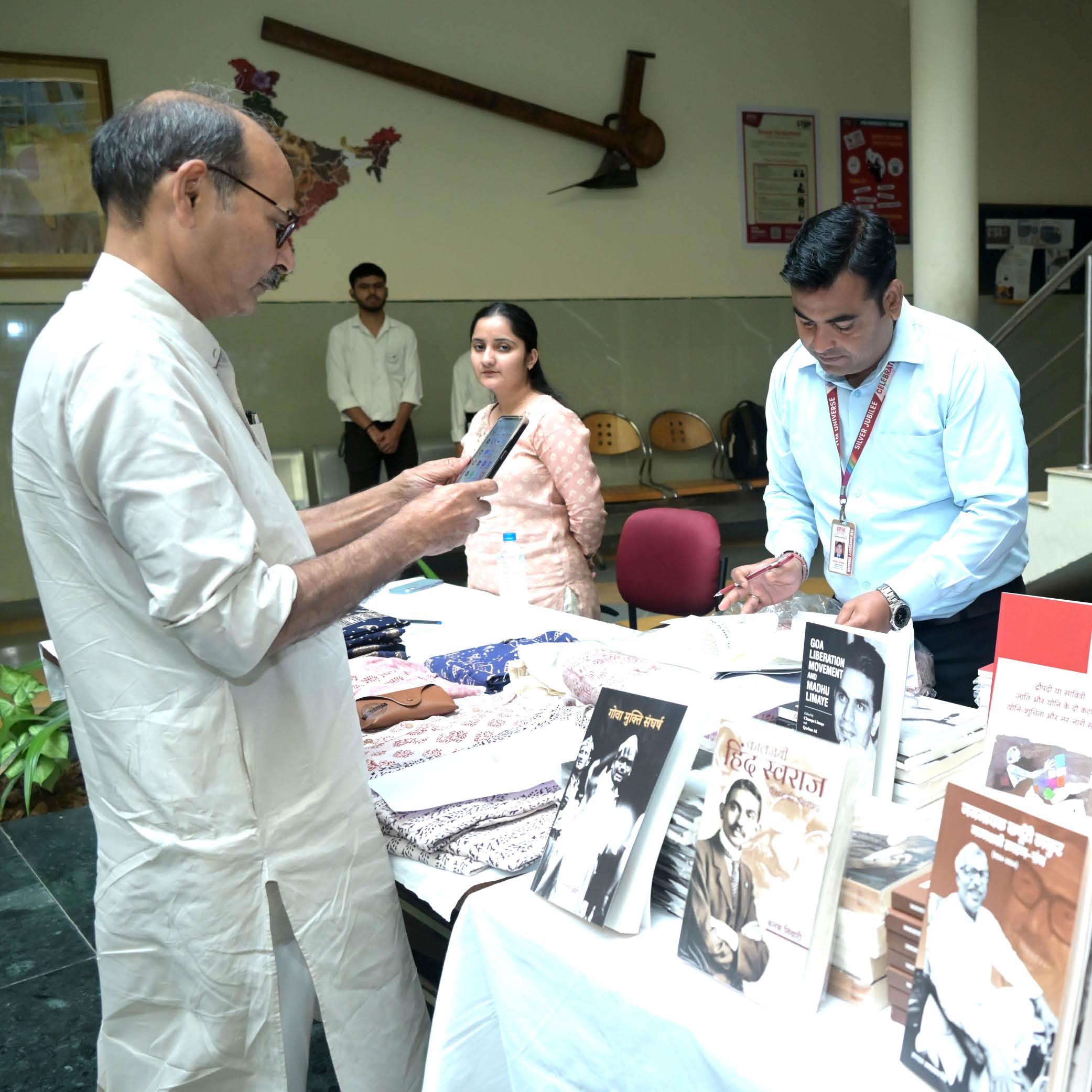 महात्मा गांधी, पंडित जवाहरलाल नेहरू और डॉ. राममनोहर लोहिया से संबंधित पुस्तकों की तीन दिवसीय प्रदर्शनी आयोजित की गई, जिसमें दुर्लभ प्रकाशनों तथा समीक्षात्मक रचनाओं का प्रदर्शन किया गया।