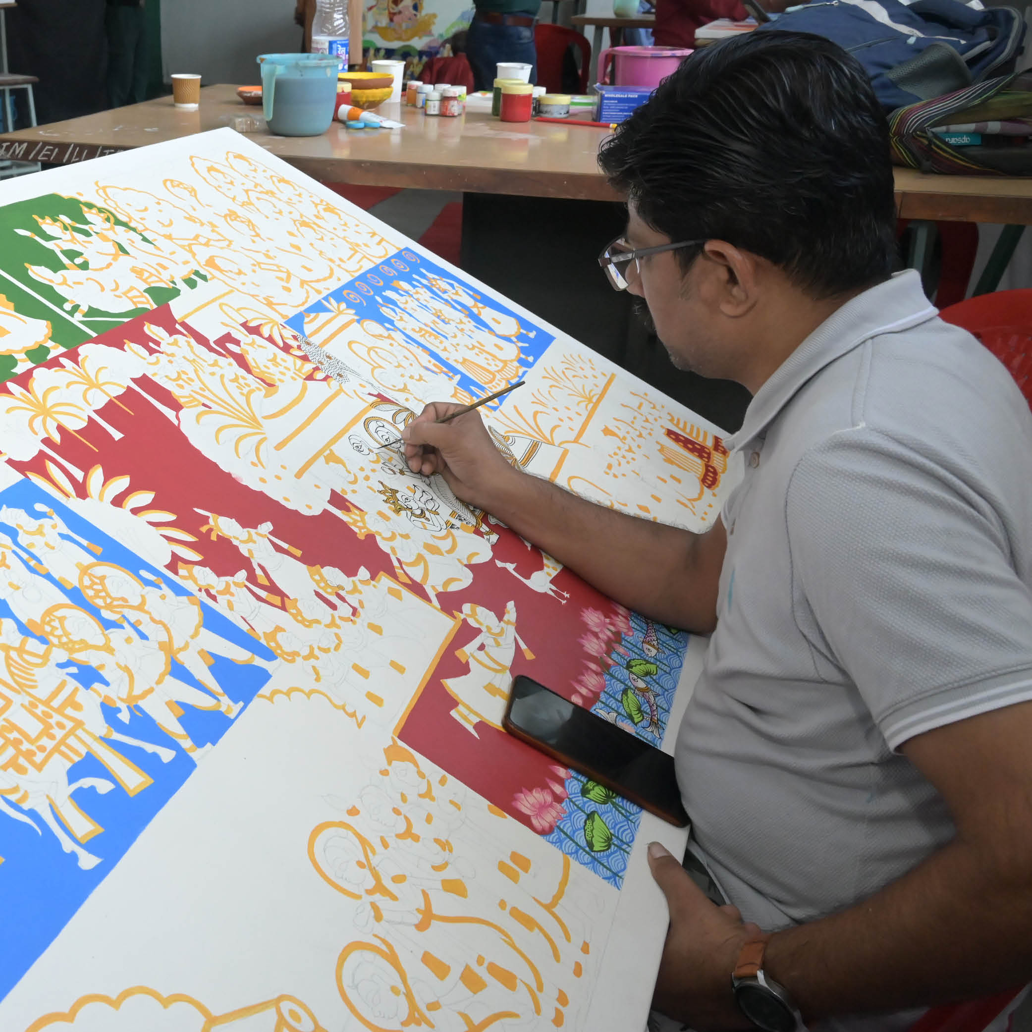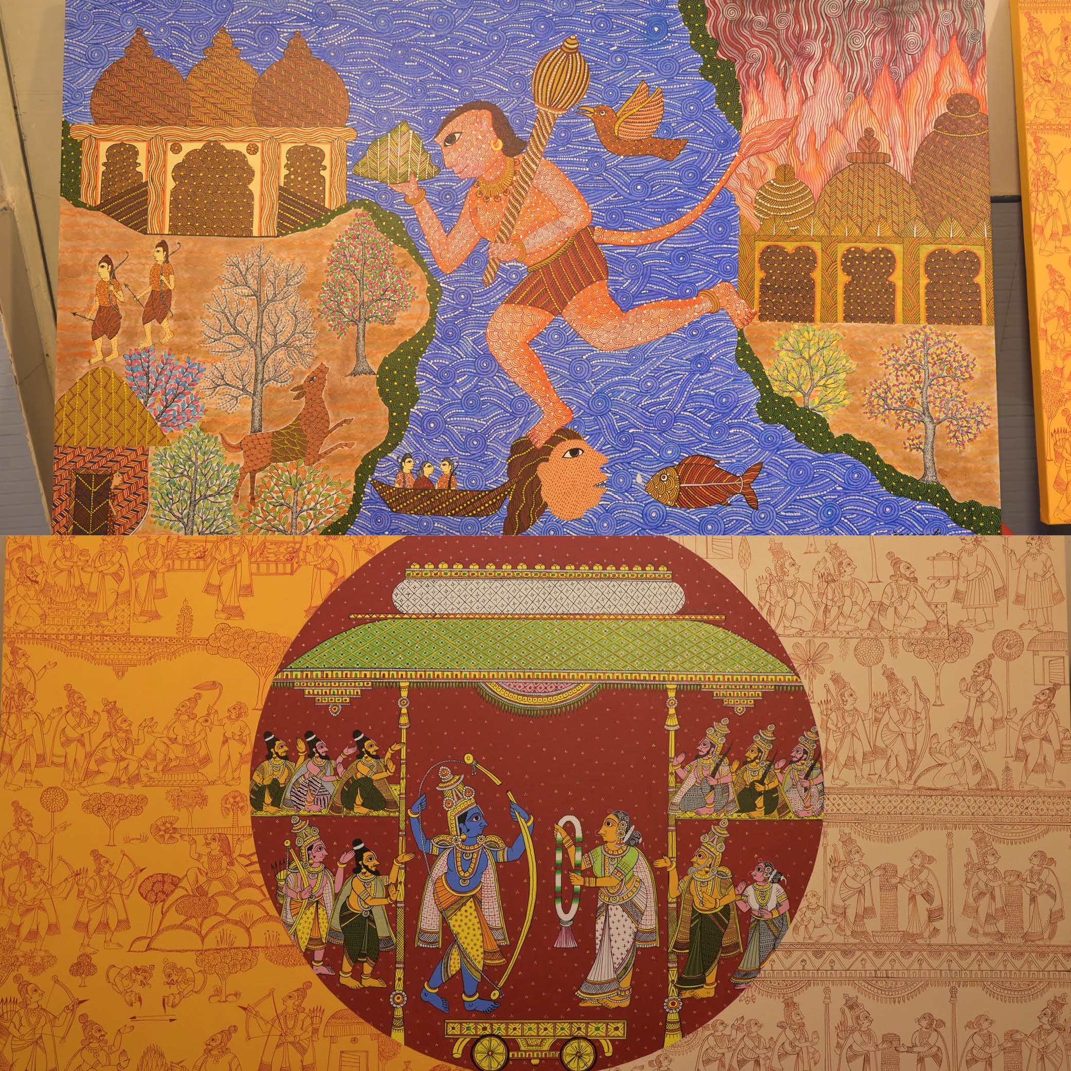 भारतीय कला परंपरा की विविध शैलियों को समर्पित प्रदर्शनी का आयोजन किया गया, जिसमें—